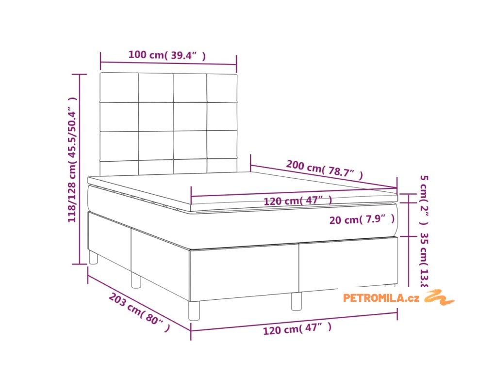 - Rozměry: 120 x 200 x 20 cm (Š x D x V)