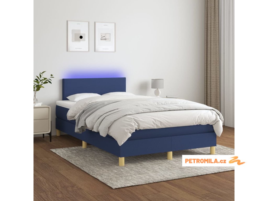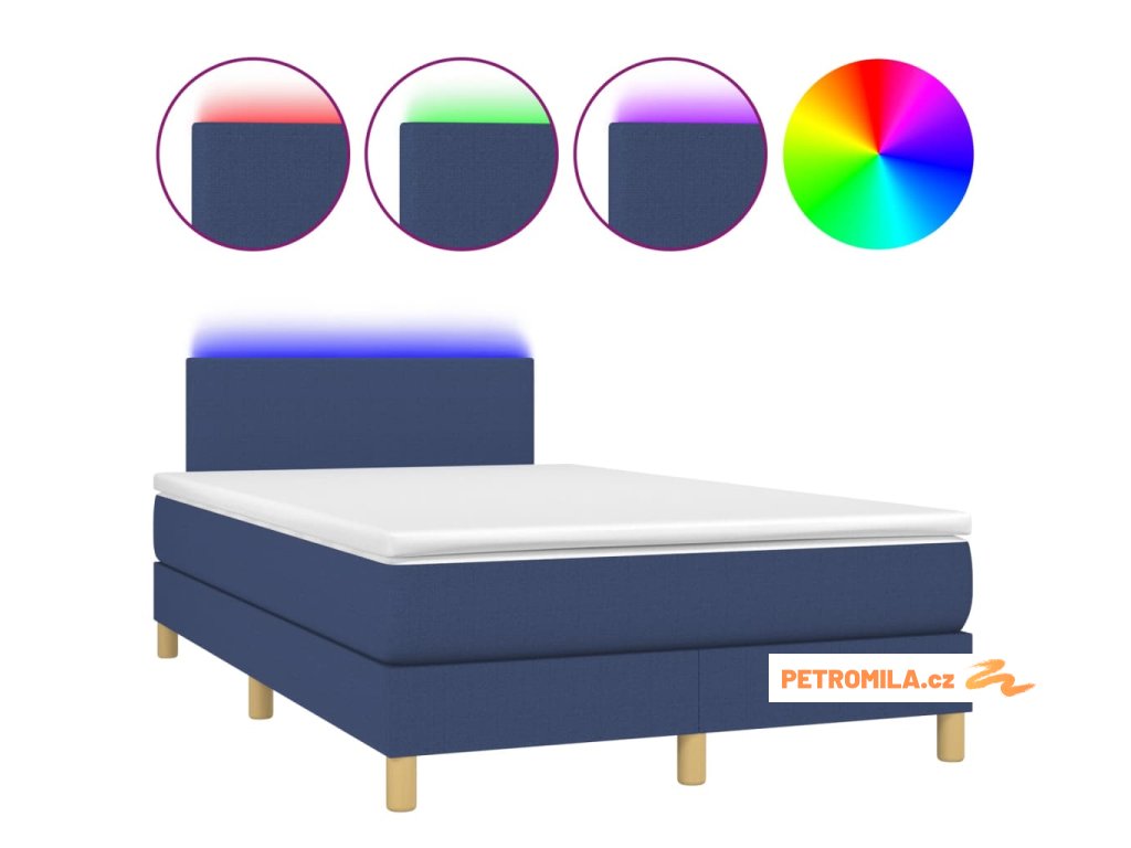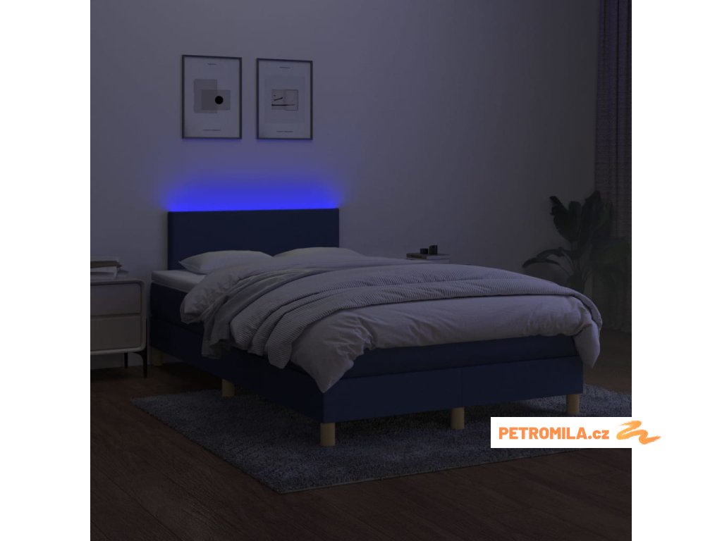 Box spring postel s matrací a LED modrá 120 x 200 cm textil