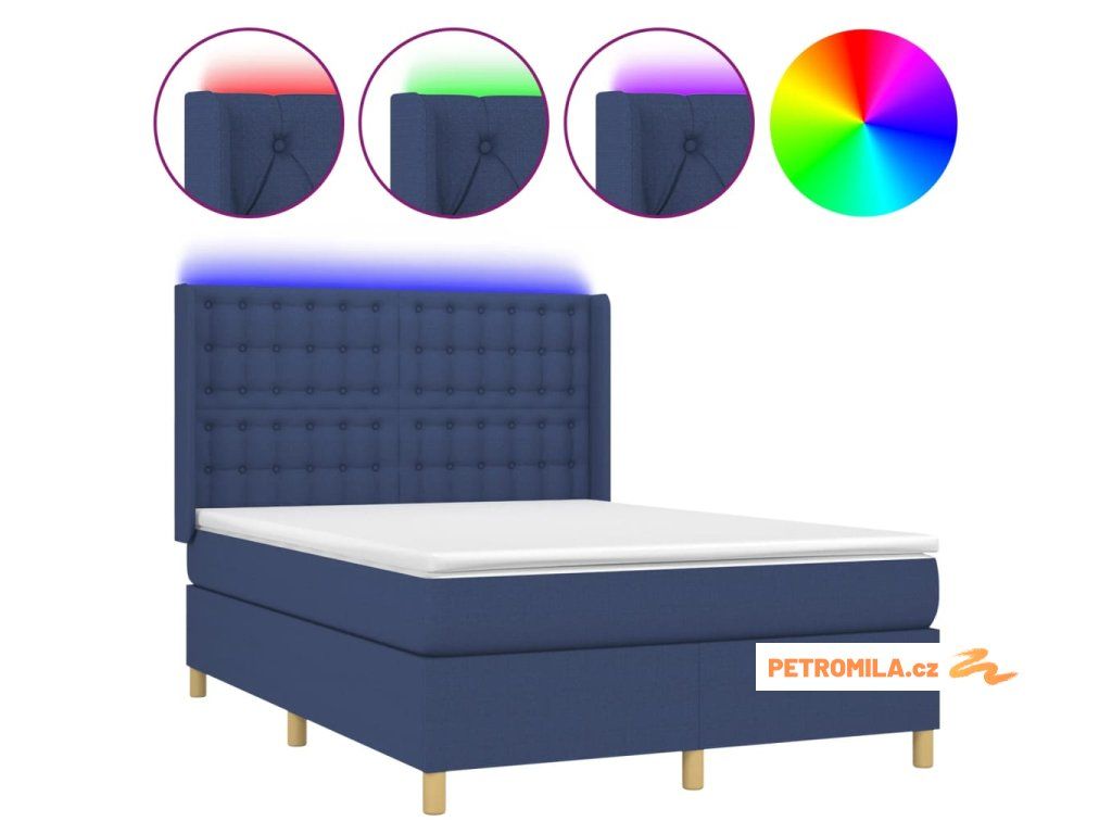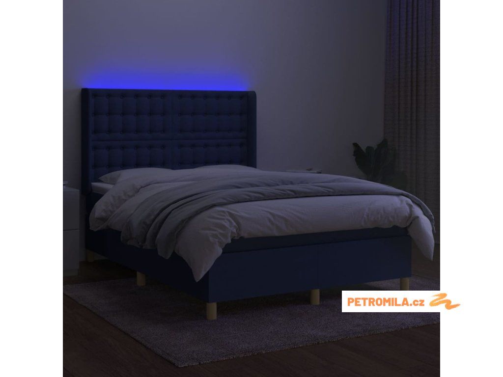 Box spring postel s matrací a LED modrá 140x190 cm textil