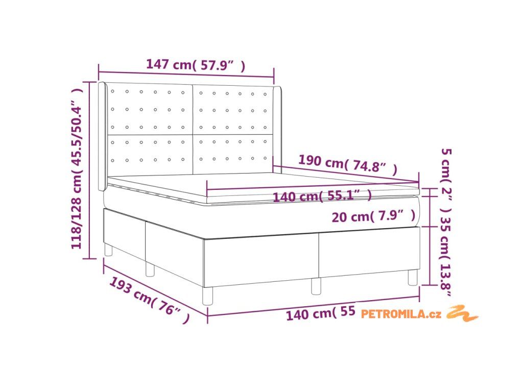 - Rozměry: 140 x 190 x 20 cm (Š x D x V)