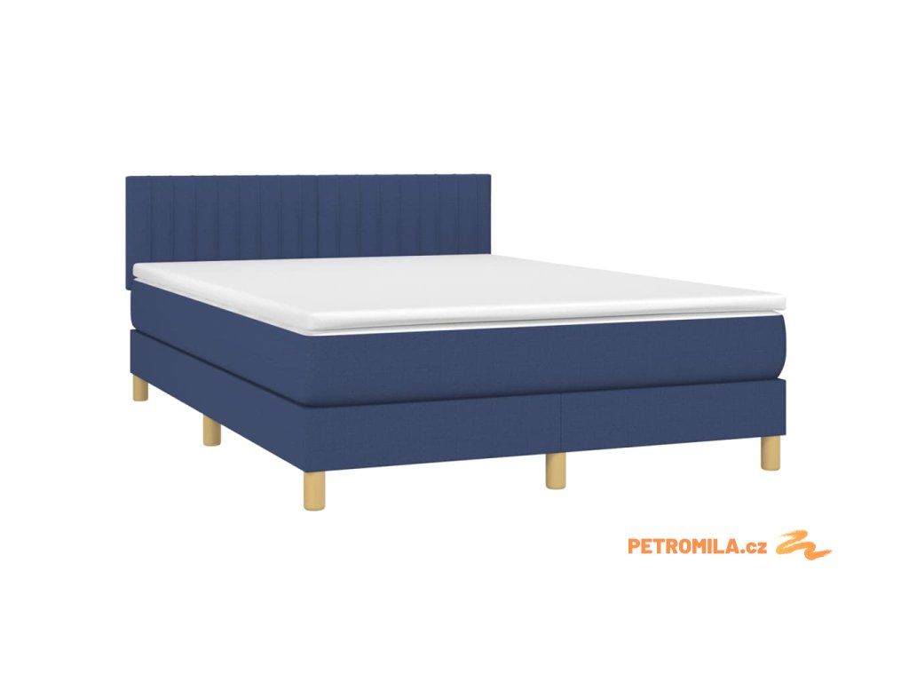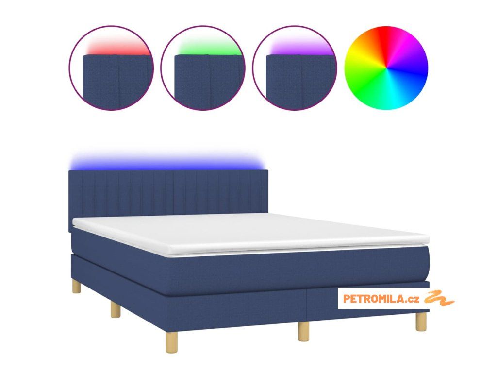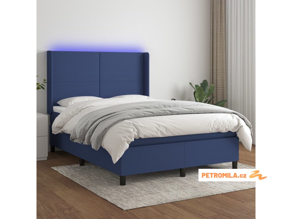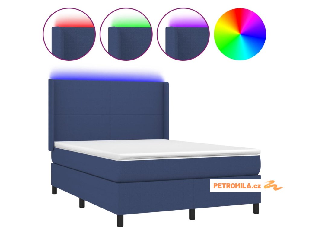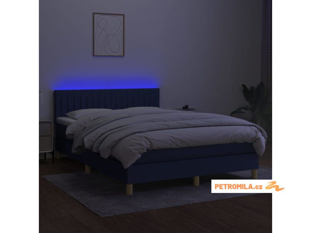 Box spring postel s matrací a LED modrá 140x200 cm textil