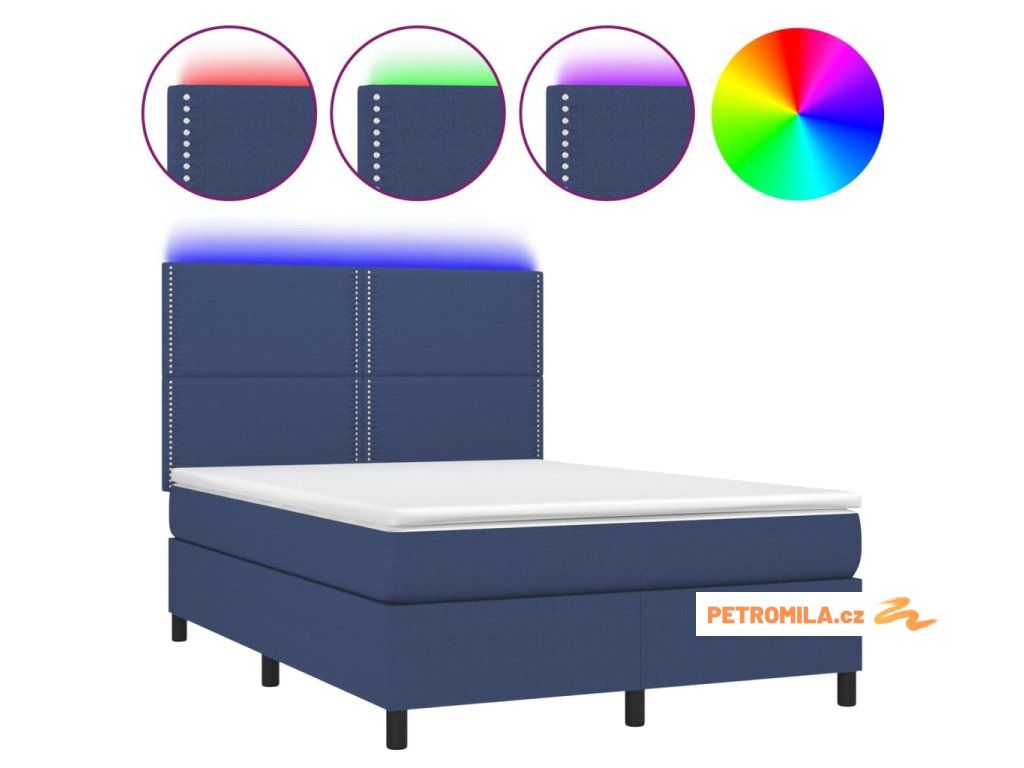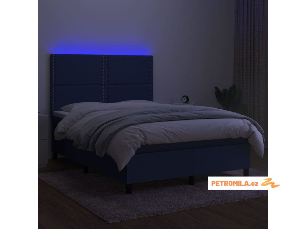Box spring postel s matrací a LED modrá 140x200 cm textil