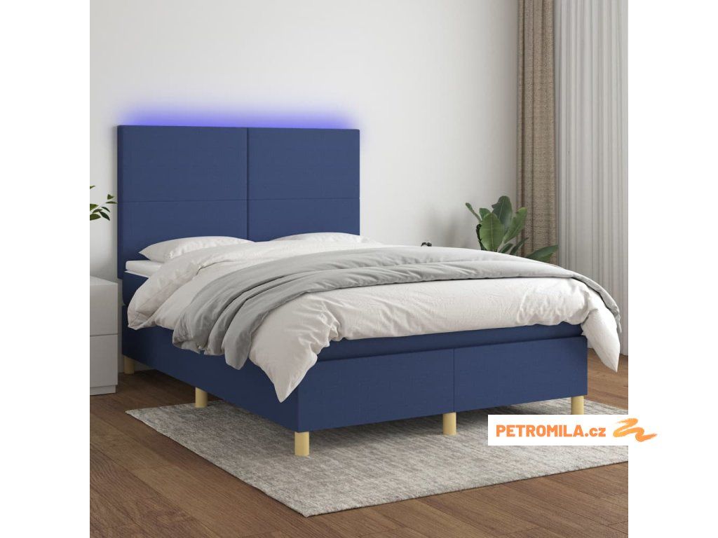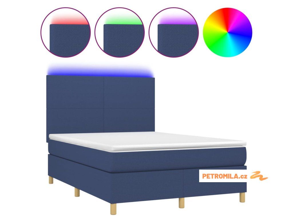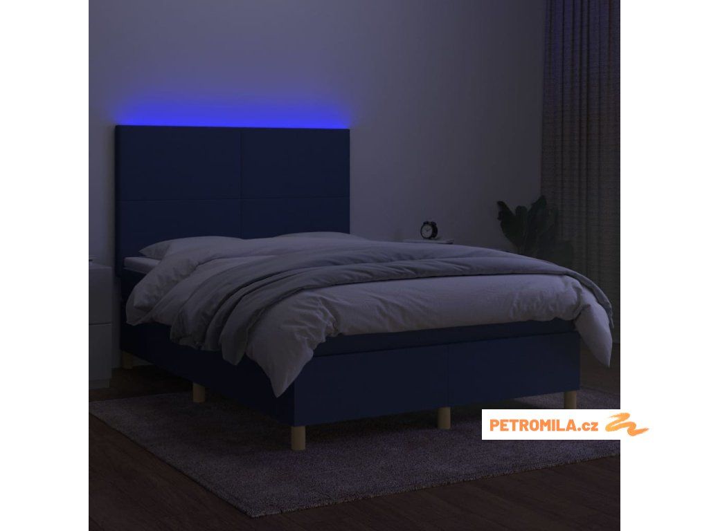 Box spring postel s matrací a LED modrá 140x200 cm textil