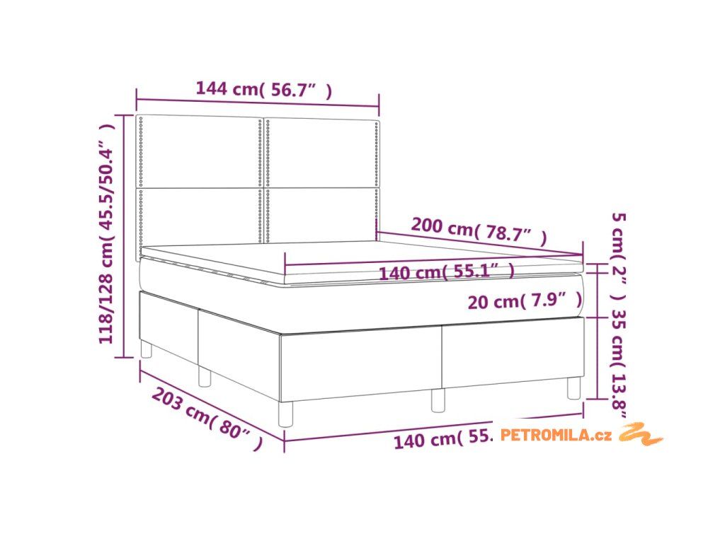 - Rozměry: 140 x 200 x 20 cm (Š x D x V)