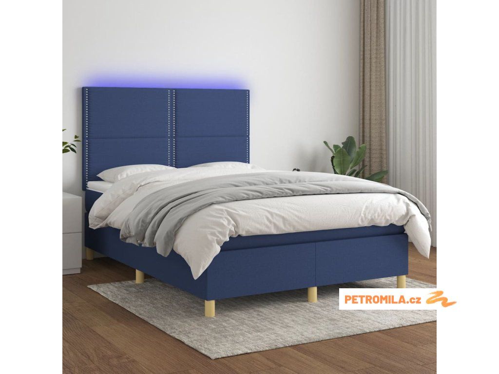 Box spring postel s matrací a LED modrá 140x200 cm textil