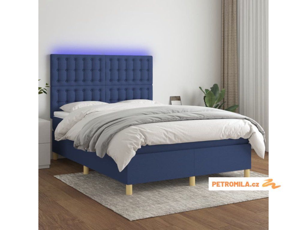 Box spring postel s matrací a LED modrá 140x200 cm textil