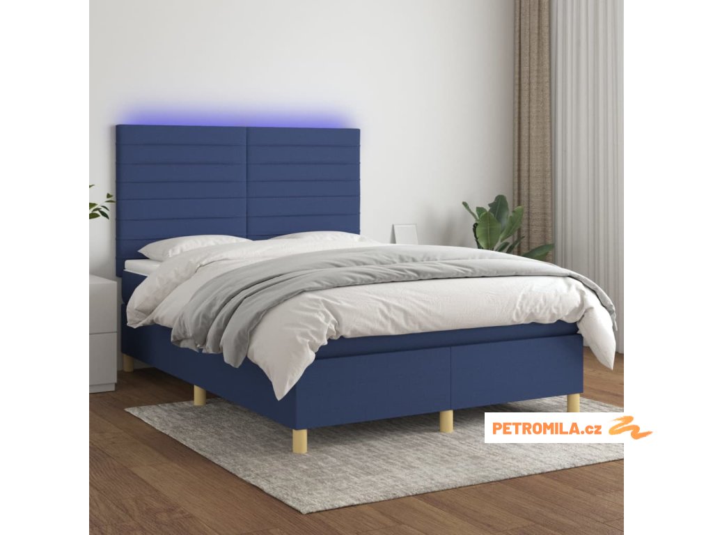 Box spring postel s matrací a LED modrá 140x200 cm textil