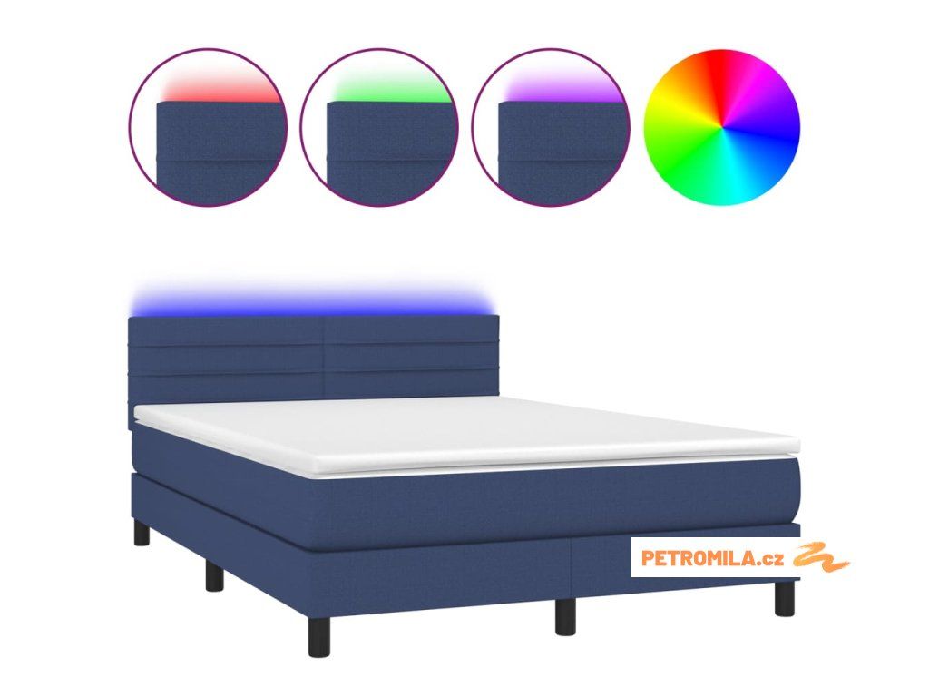 Box spring postel s matrací a LED modrá 140x200 cm textil