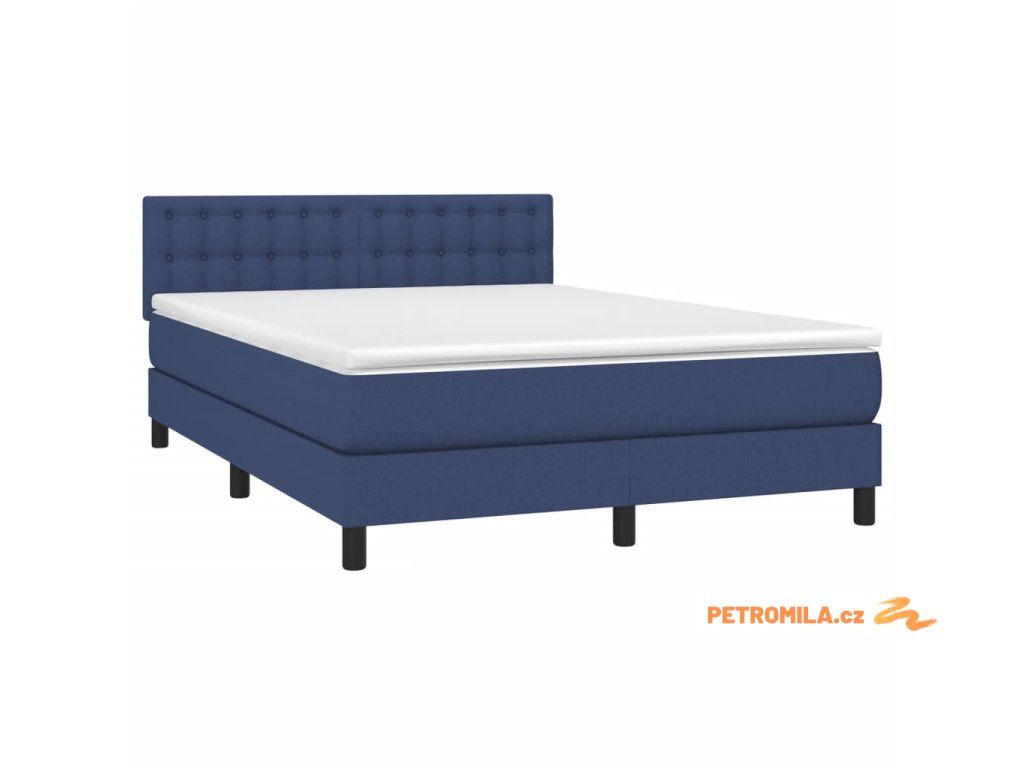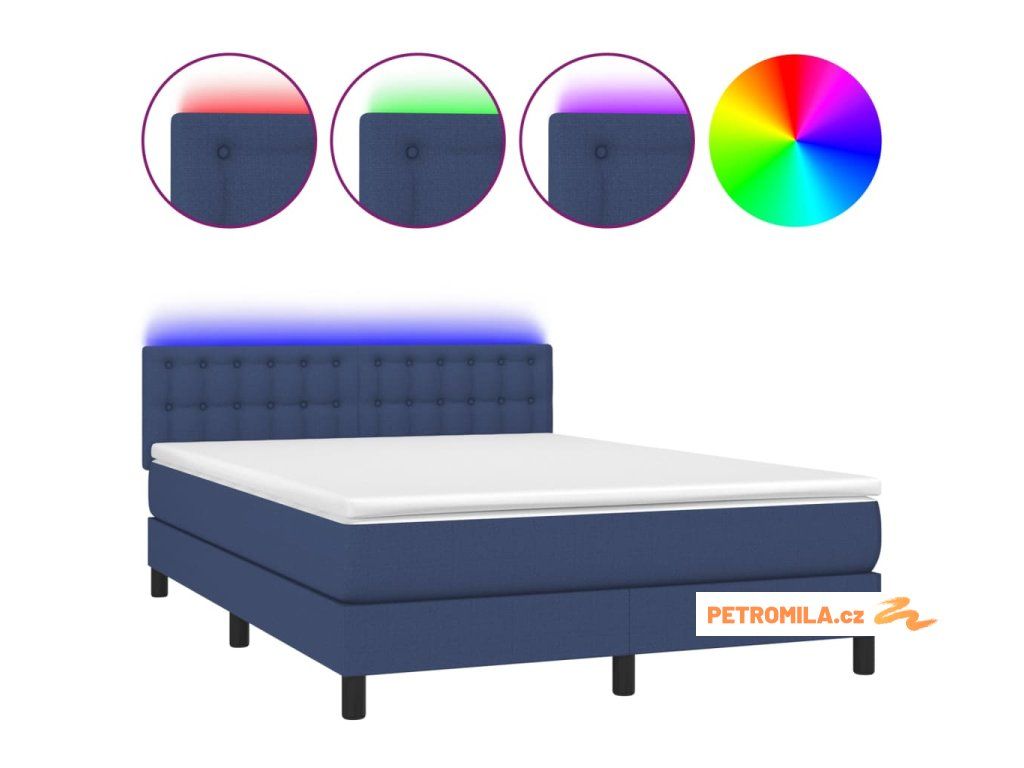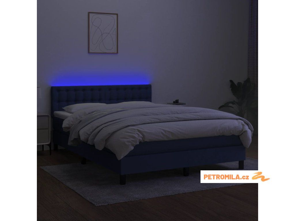 Box spring postel s matrací a LED modrá 140x200 cm textil