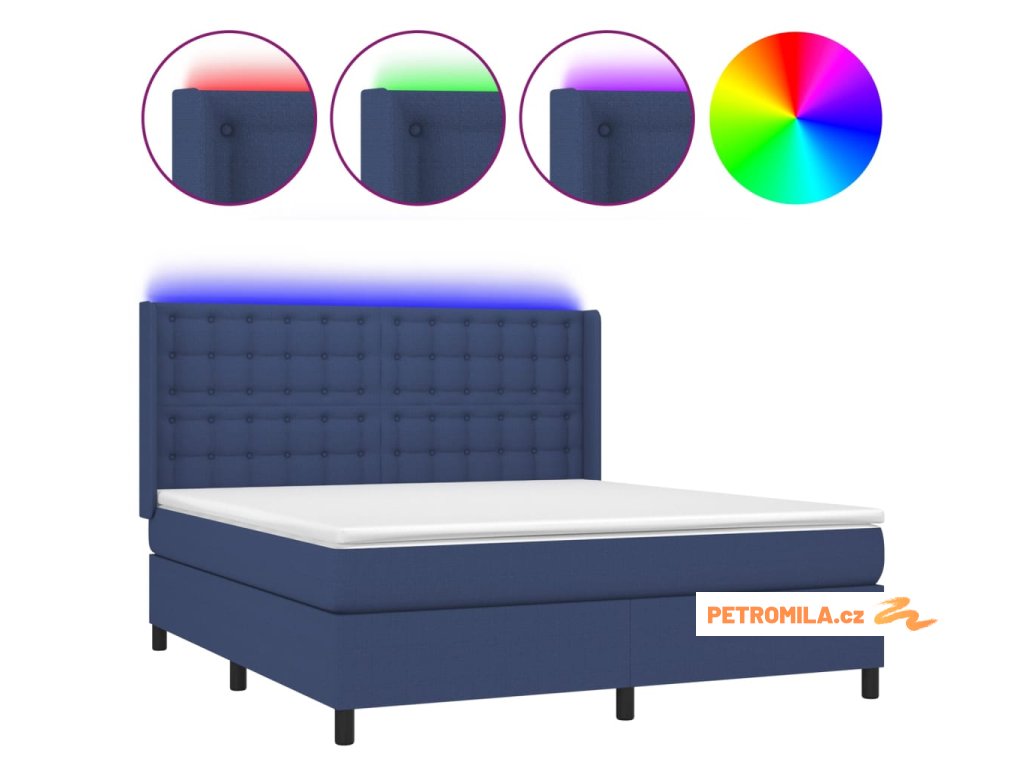 Box spring postel s matrací a LED modrá 160x200 cm textil