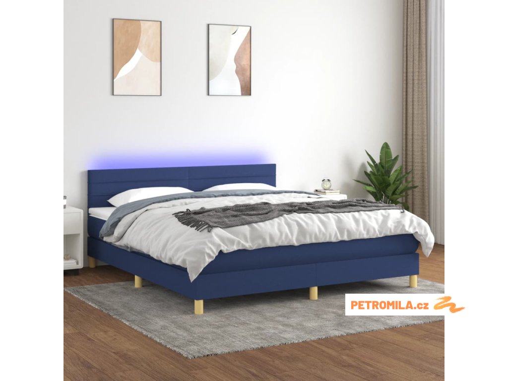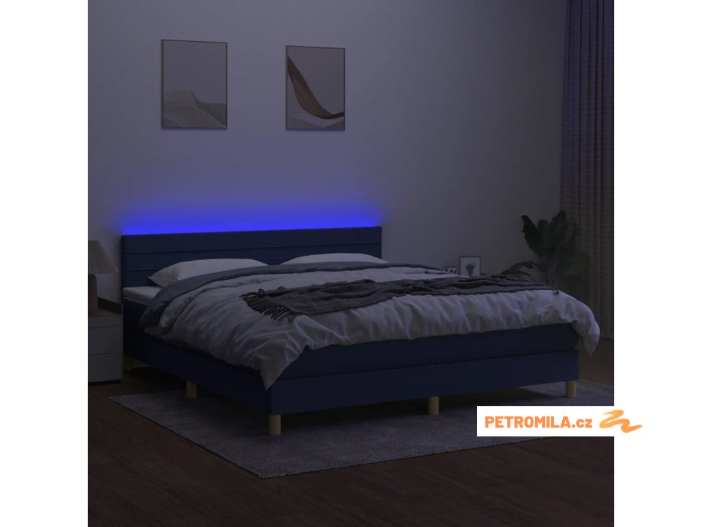 Box spring postel s matrací a LED modrá 160x200 cm textil