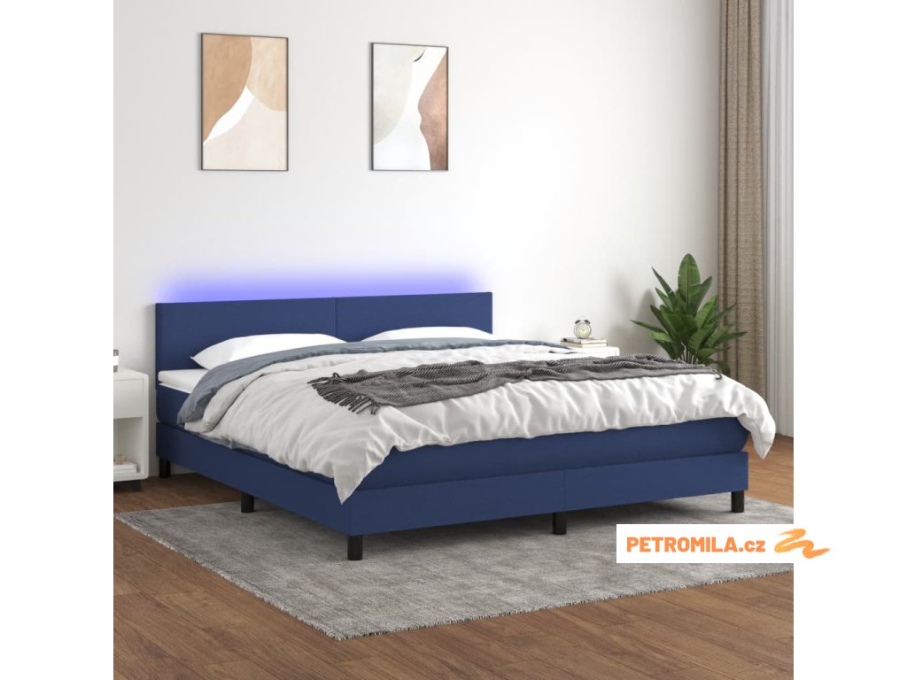 Box spring postel s matrací a LED modrá 180x200 cm textil
