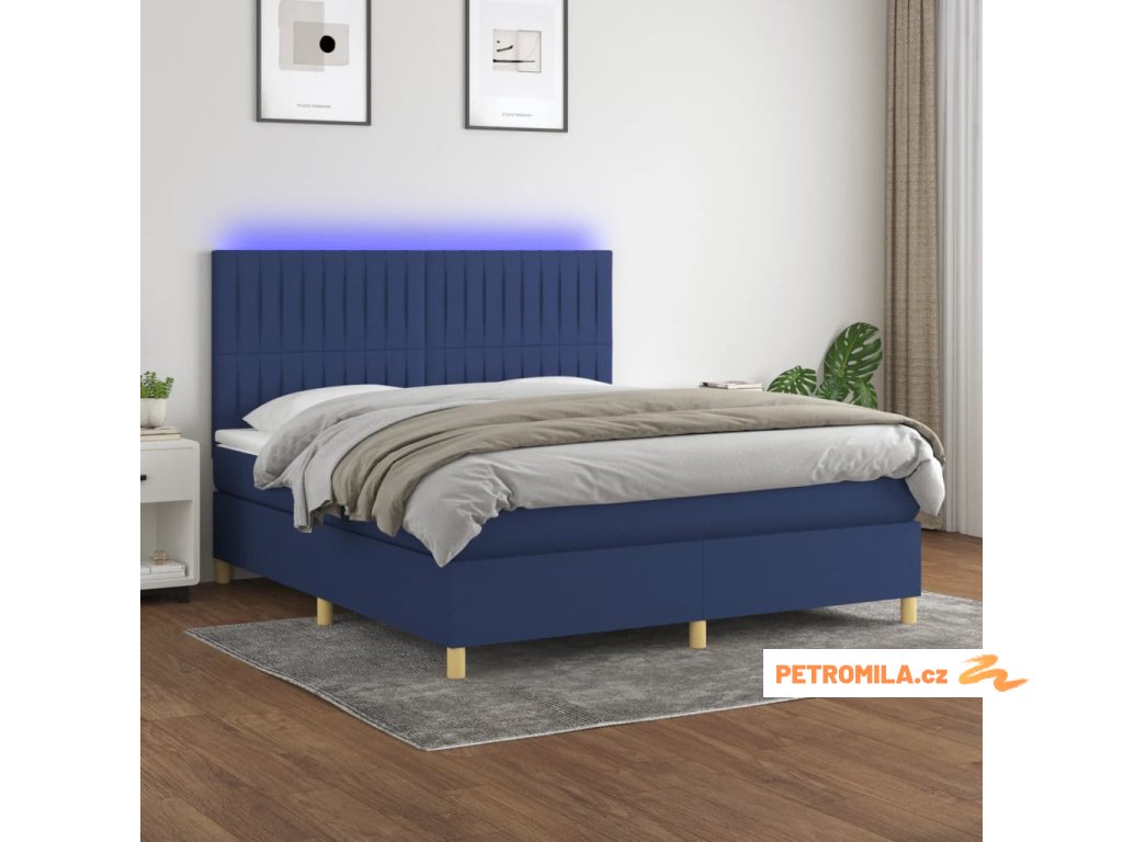 Box spring postel s matrací a LED modrá 180x200 cm textil