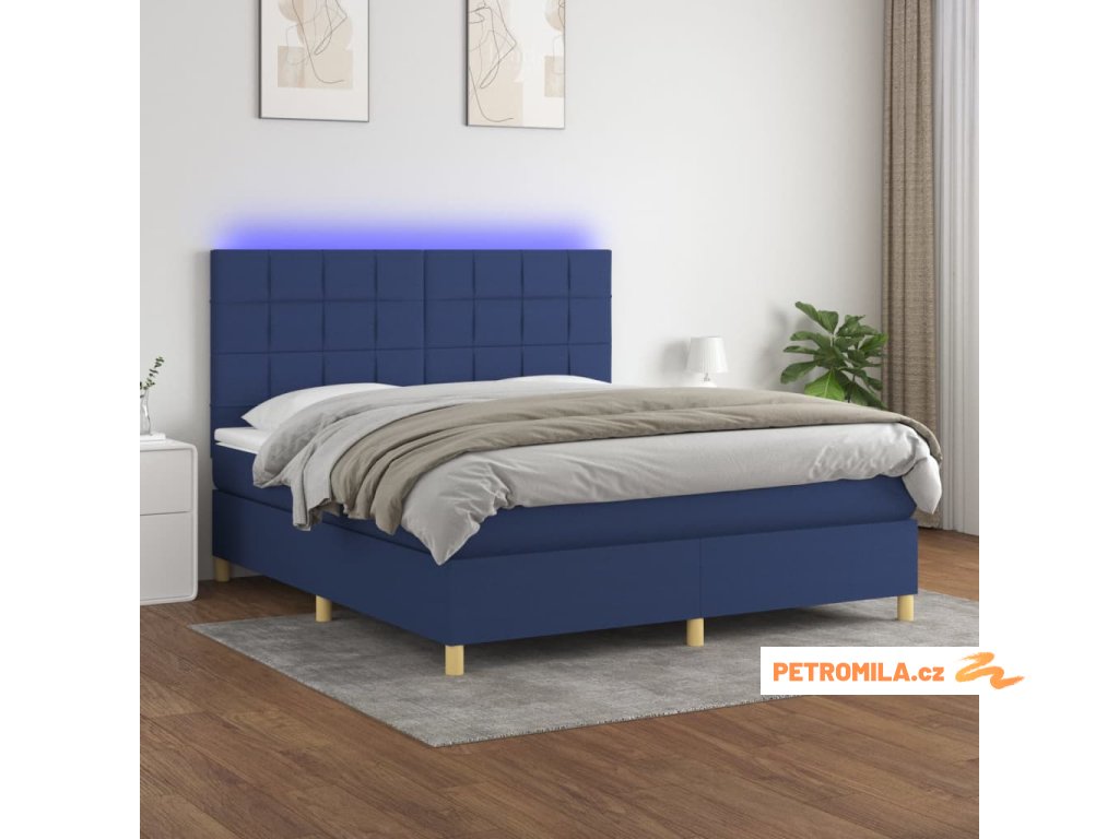 Box spring postel s matrací a LED modrá 180x200 cm textil