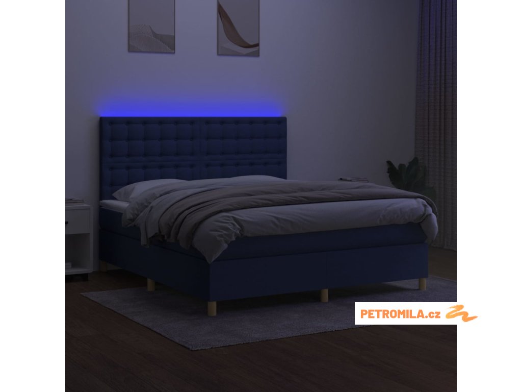 Box spring postel s matrací a LED modrá 180x200 cm textil