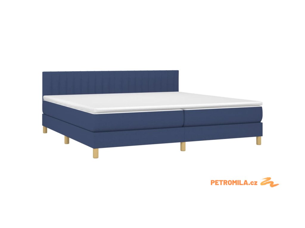 Box spring postel s matrací a LED modrá 200x200 cm textil