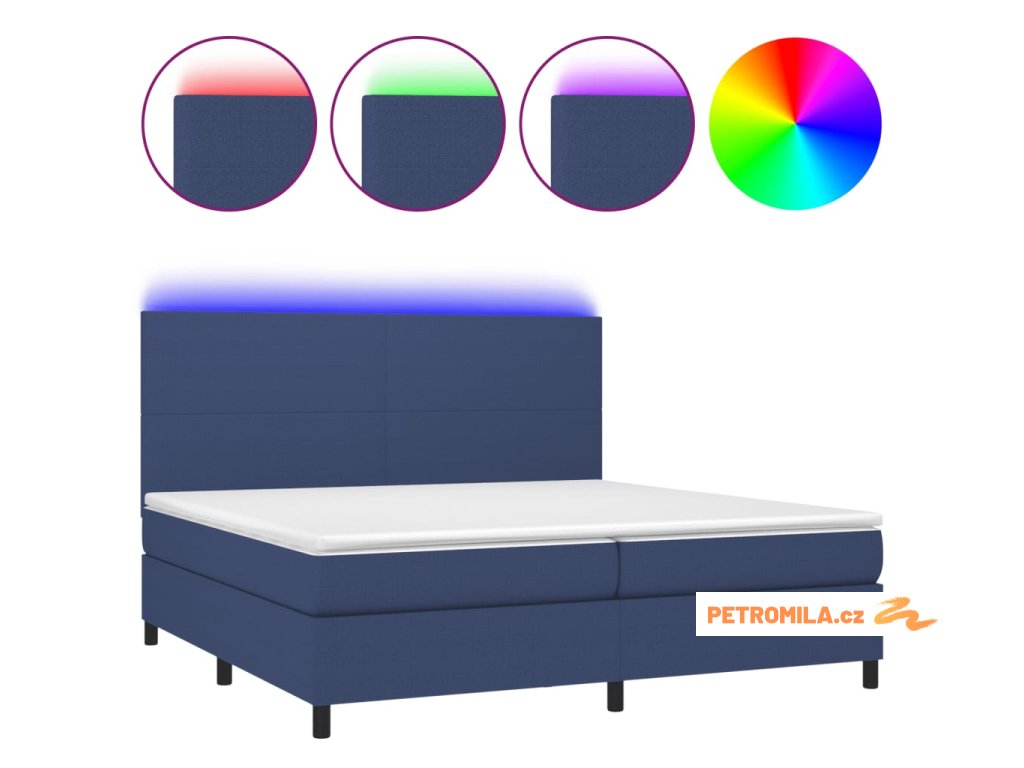 Box spring postel s matrací a LED modrá 200x200 cm textil