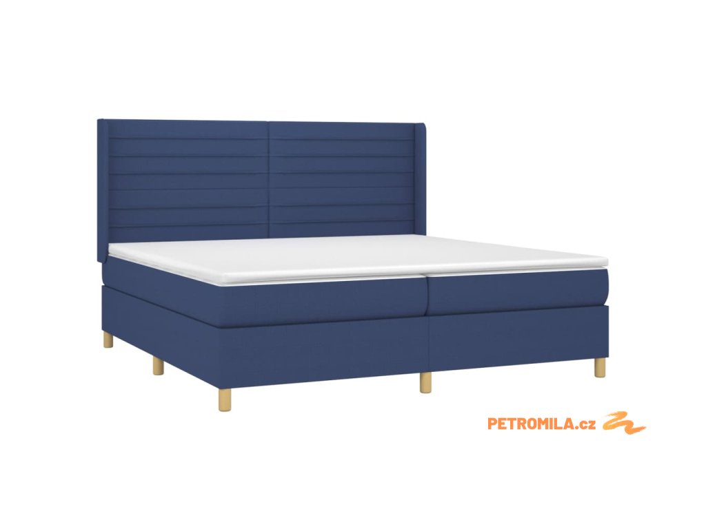 Box spring postel s matrací a LED modrá 200x200 cm textil