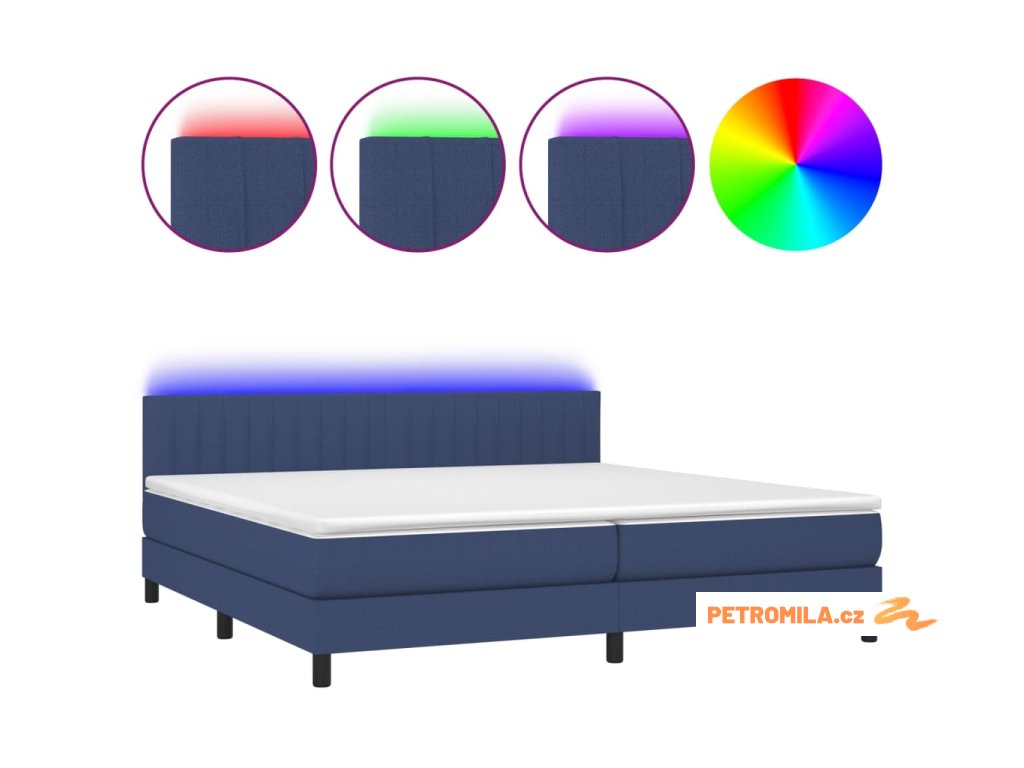 Box spring postel s matrací a LED modrá 200x200 cm textil