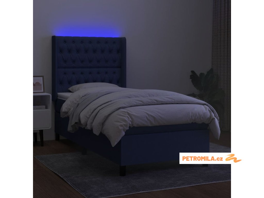 Box spring postel s matrací a LED modrá 80 x 200 cm textil