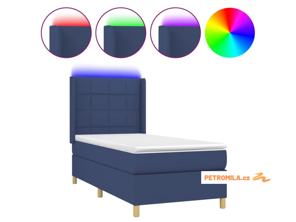 Box spring postel s matrací a LED modrá 90x200 cm textil