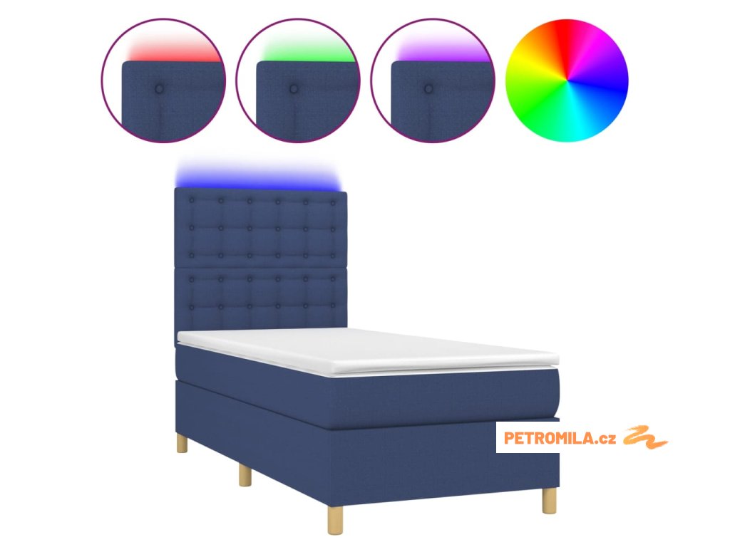 Box spring postel s matrací a LED modrá 90x200 cm textil