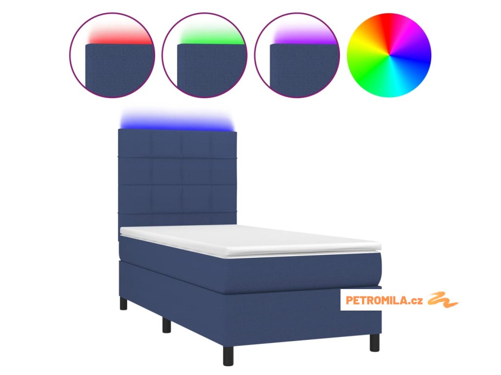 Box spring postel s matrací a LED modrá 90x200 cm textil