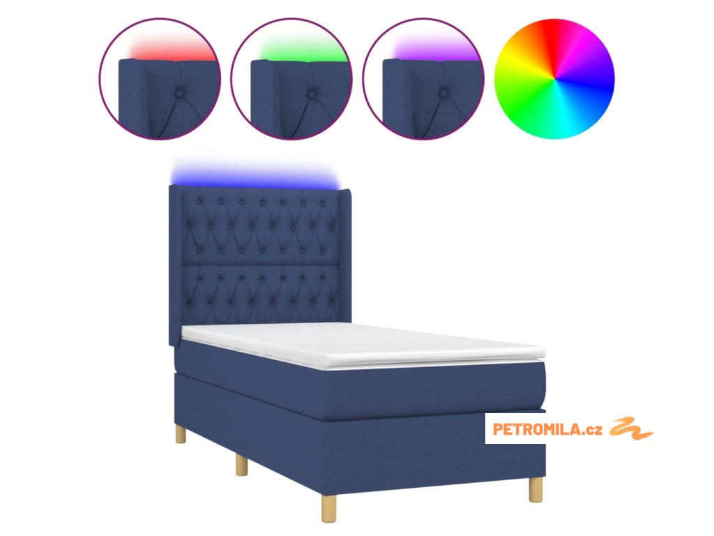 Box spring postel s matrací a LED modrá 90x200 cm textil