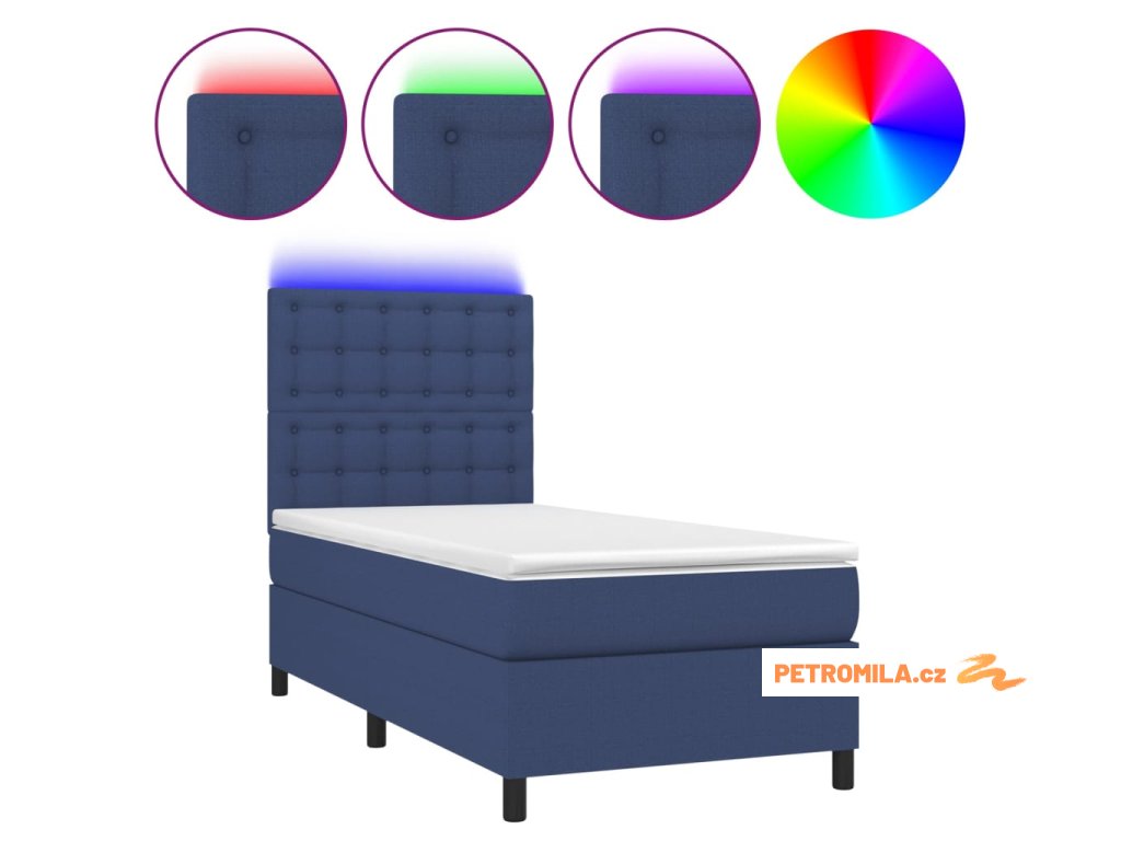 Box spring postel s matrací a LED modrá 90x200 cm textil