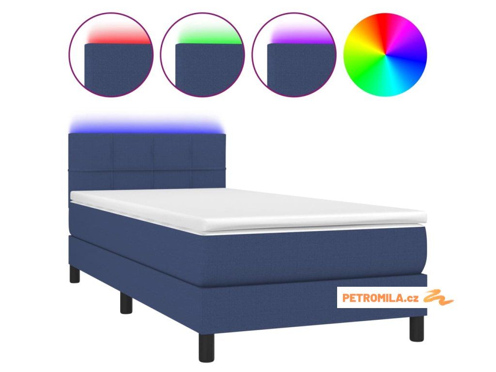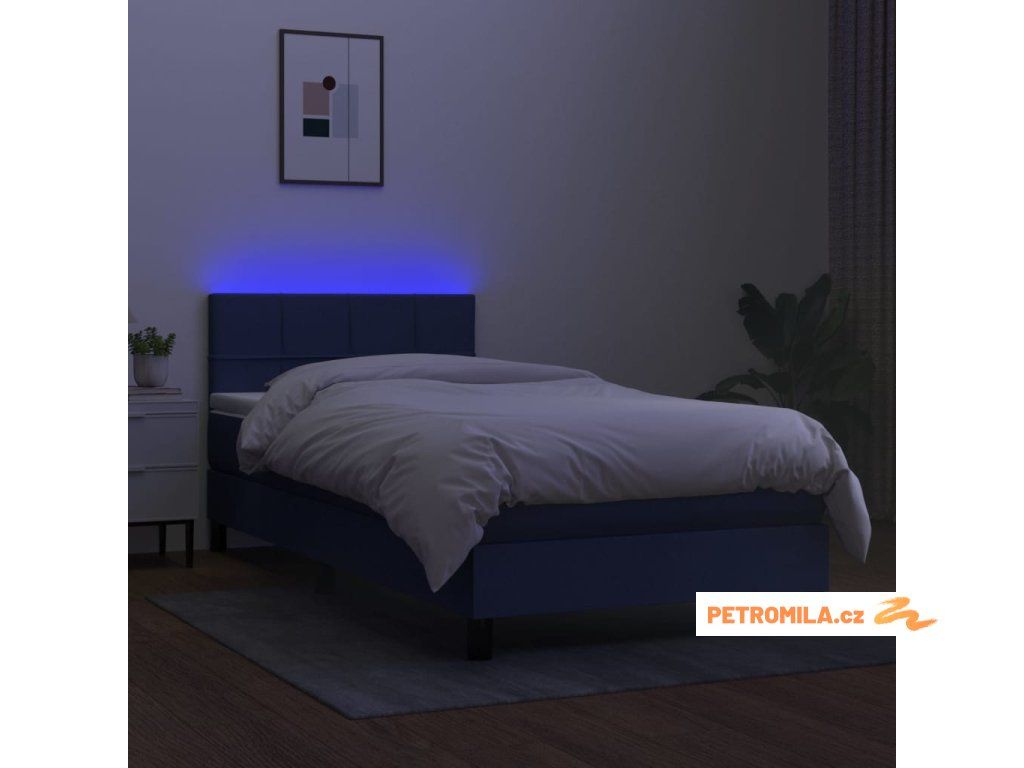 Box spring postel s matrací a LED modrá 90x200 cm textil