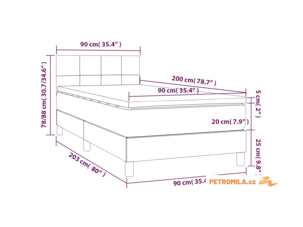 - Rozměry: 90 x 200 x 20 cm (Š x D x V)