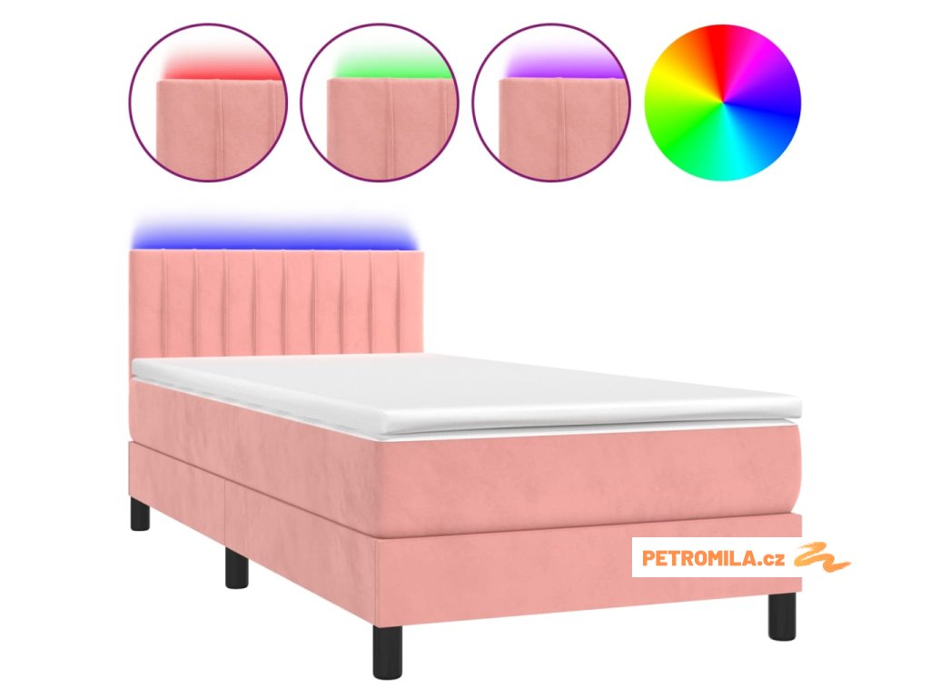 Box spring postel s matrací a LED růžová 100x200 cm samet