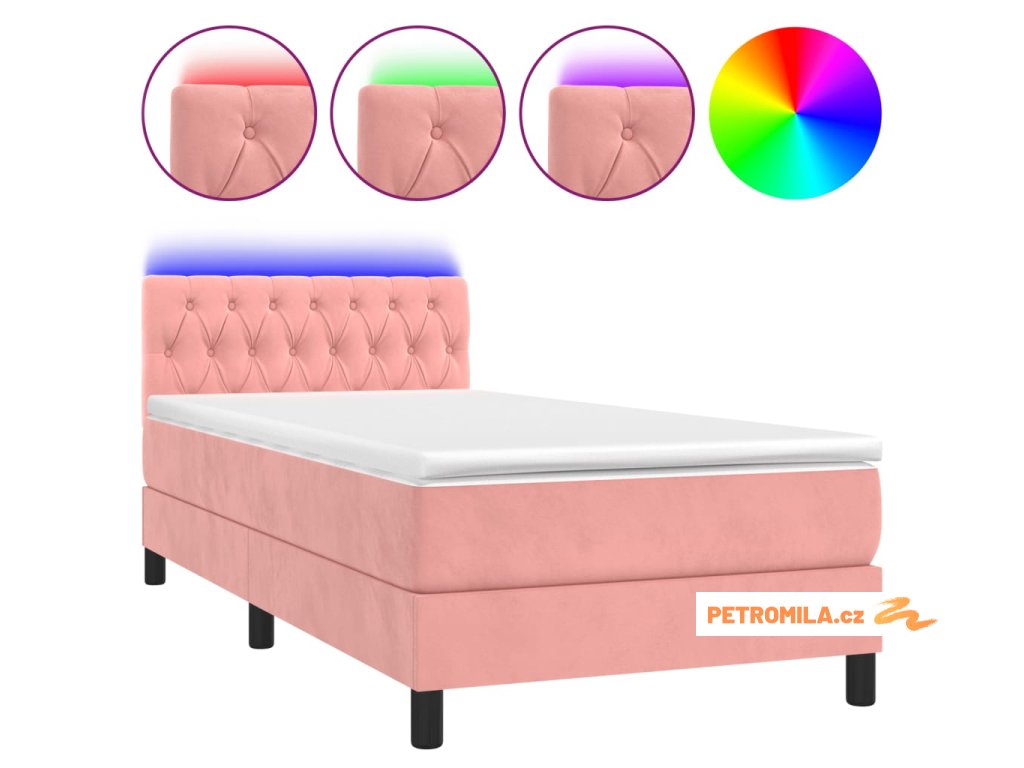 Box spring postel s matrací a LED růžová 100x200 cm samet