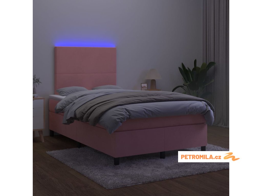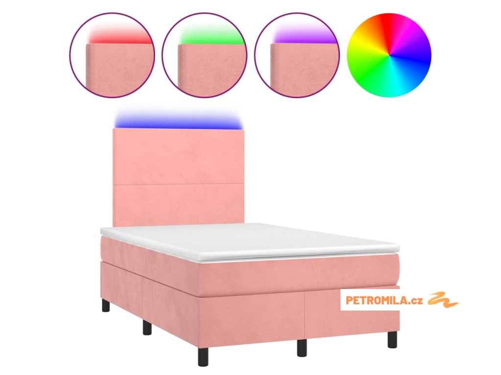 Box spring postel s matrací a LED růžová 120x200 cm samet