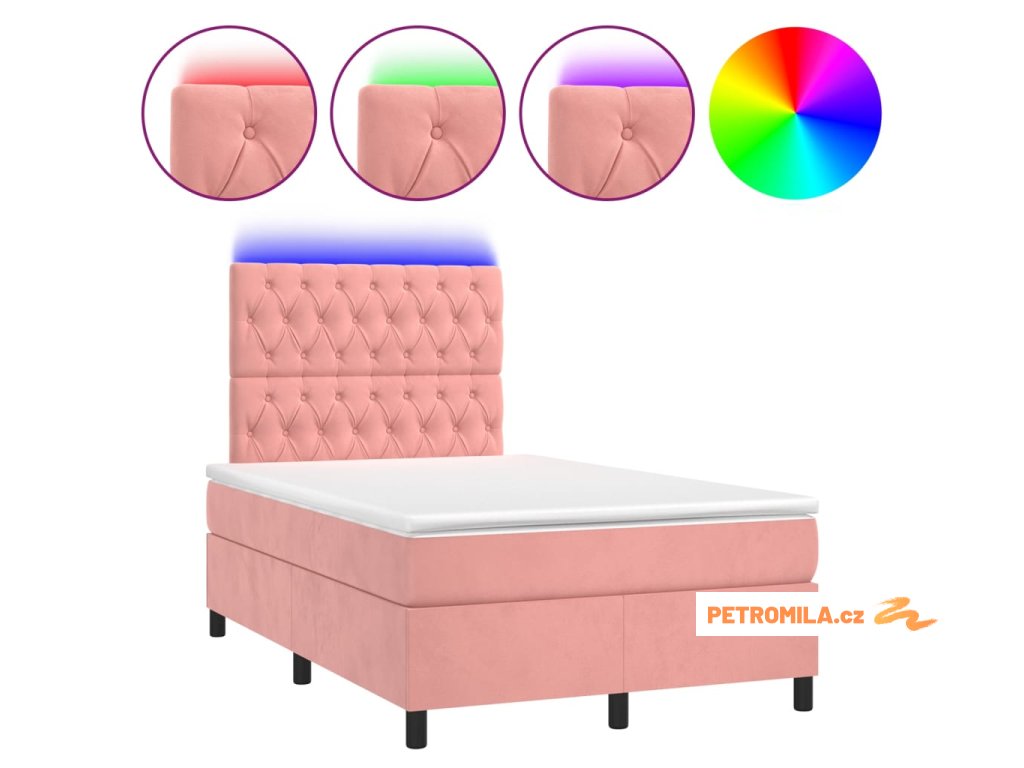 Box spring postel s matrací a LED růžová 120x200 cm samet
