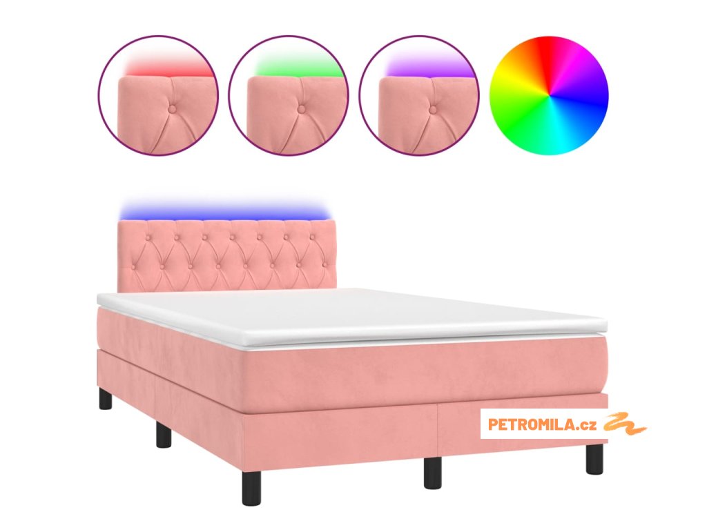 Box spring postel s matrací a LED růžová 120x200 cm samet
