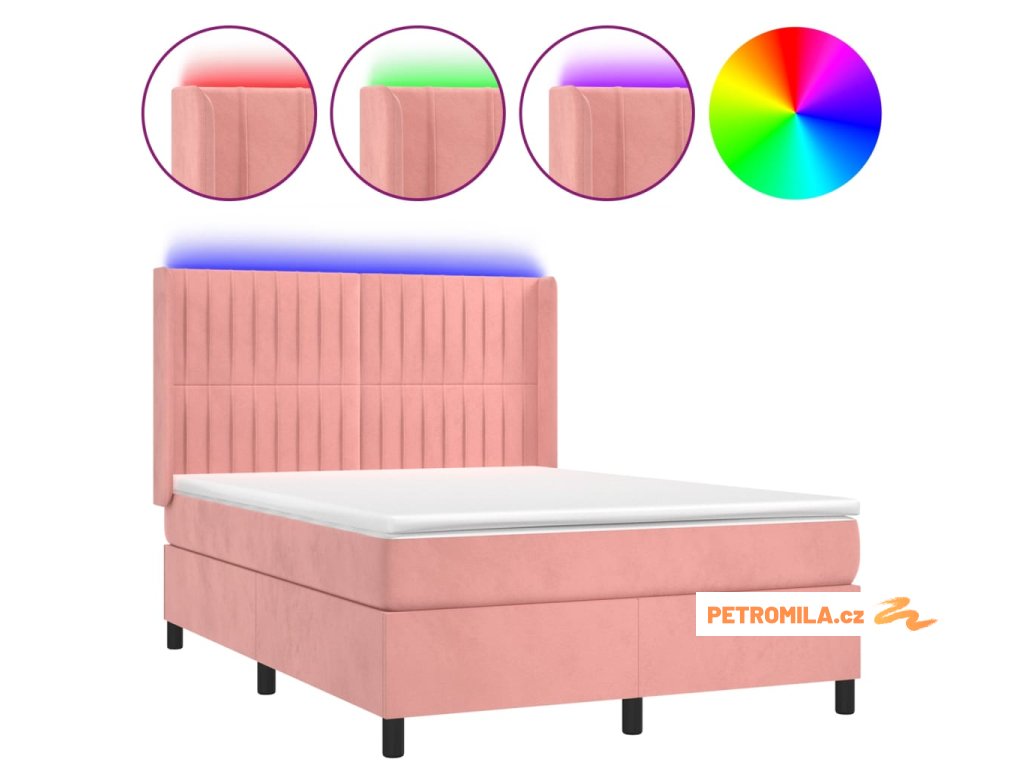 Box spring postel s matrací a LED růžová 140x200 cm samet
