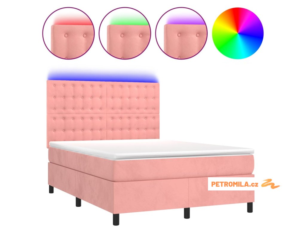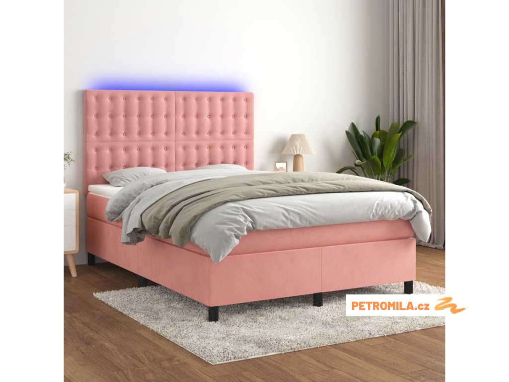 Box spring postel s matrací a LED růžová 140x200 cm samet