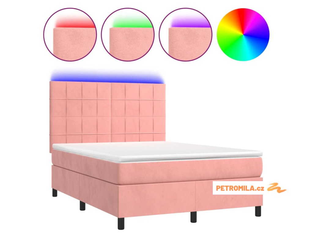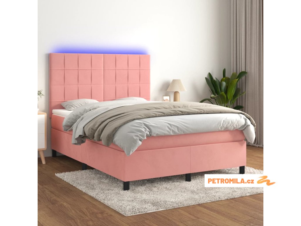 Box spring postel s matrací a LED růžová 140x200 cm samet