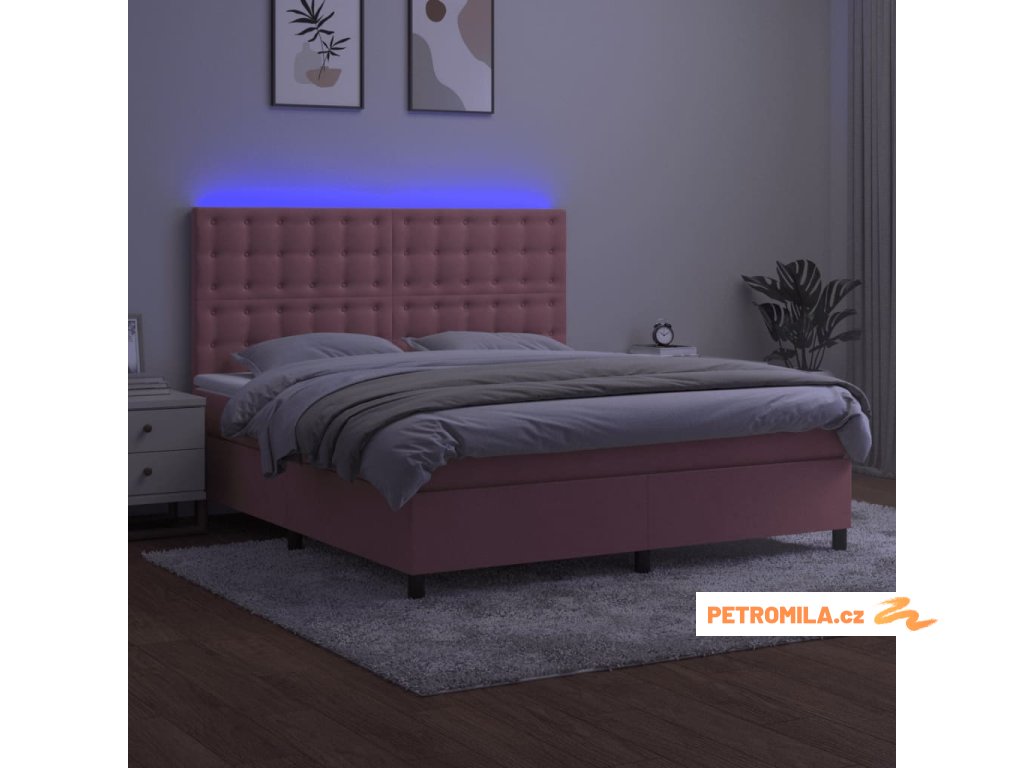 Box spring postel s matrací a LED růžová 160x200 cm samet