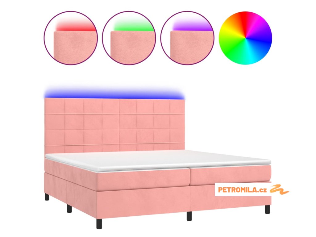 Box spring postel s matrací a LED růžová 200x200 cm samet