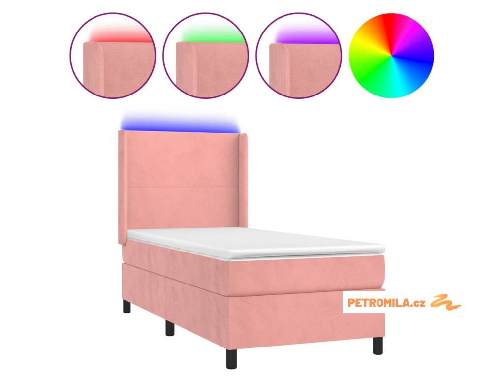 Box spring postel s matrací a LED růžová 80 x 200 cm samet