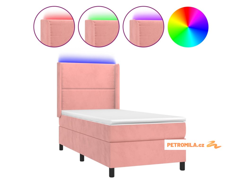 Box spring postel s matrací a LED růžová 80 x 200 cm samet