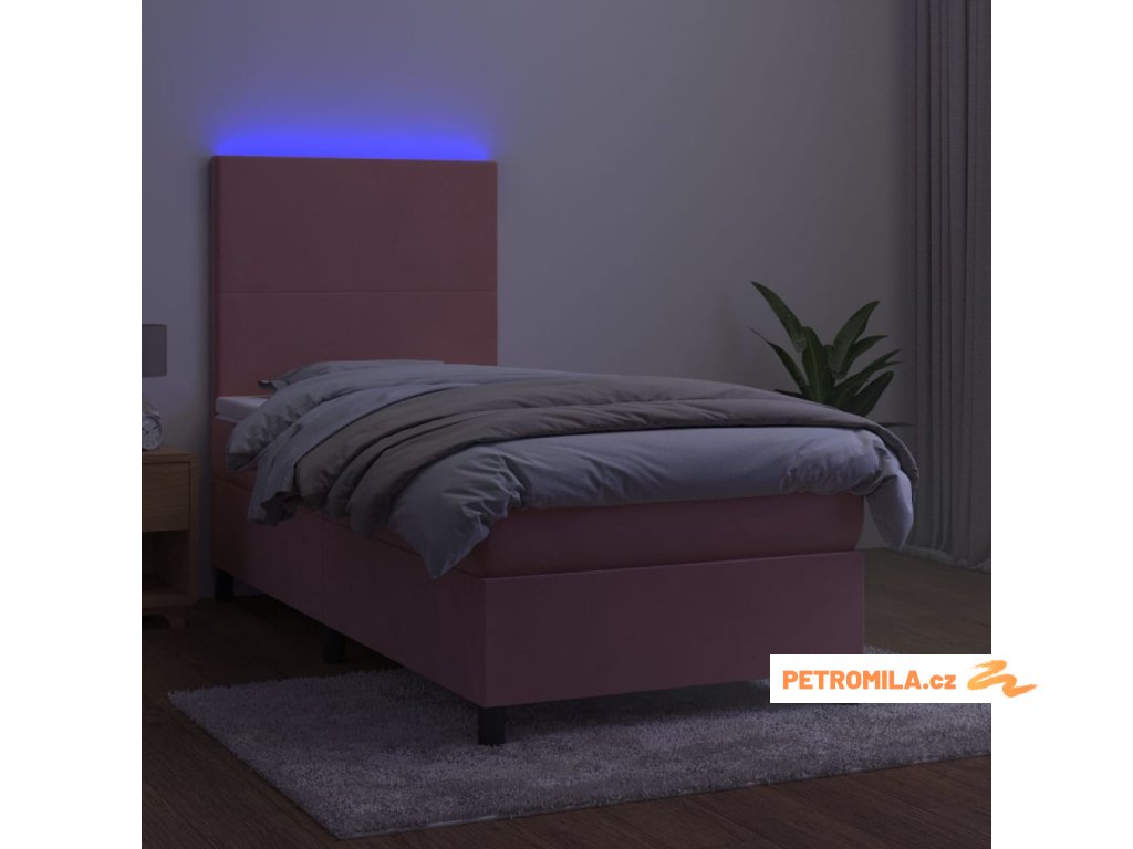 Box spring postel s matrací a LED růžová 80 x 200 cm samet