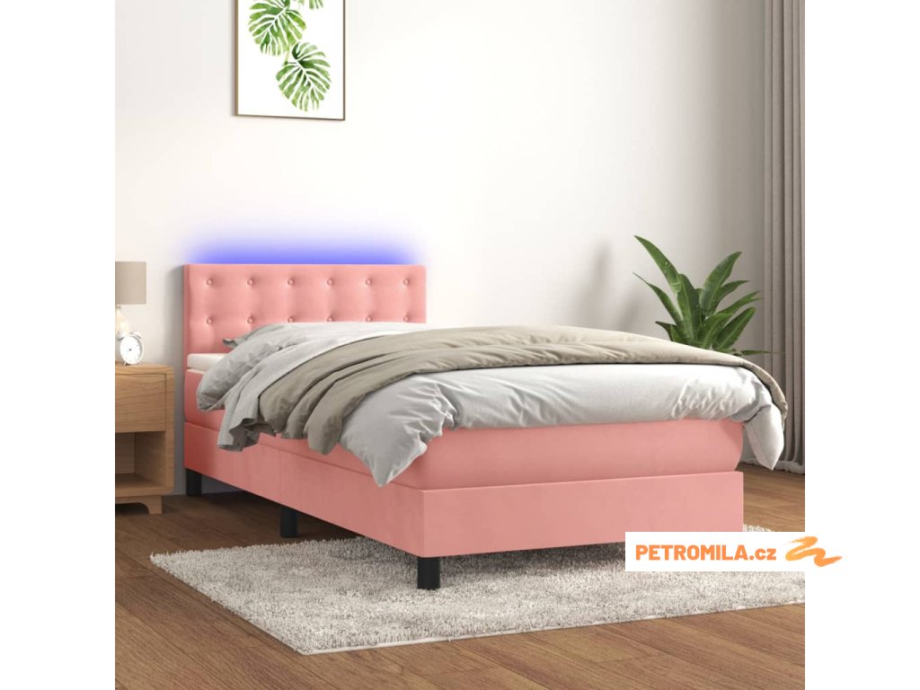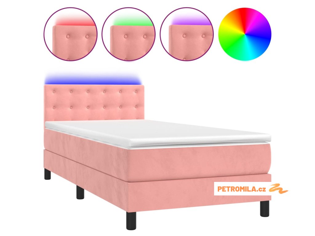 Box spring postel s matrací a LED růžová 90x190 cm samet
