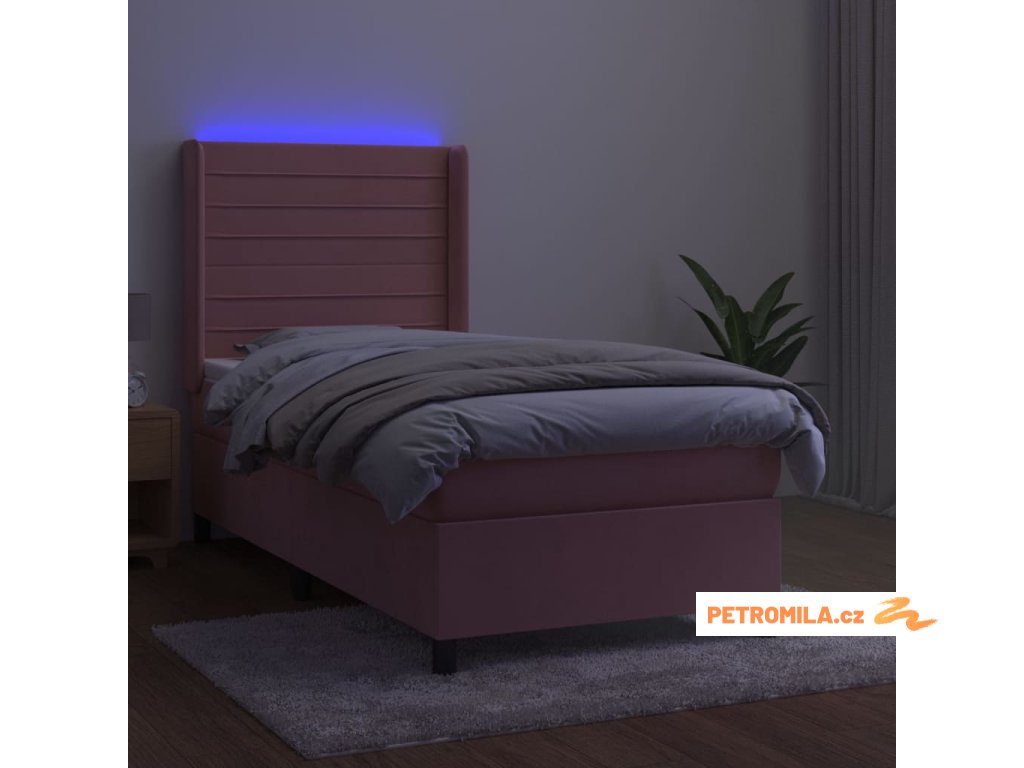 Box spring postel s matrací a LED růžová 90x200 cm samet