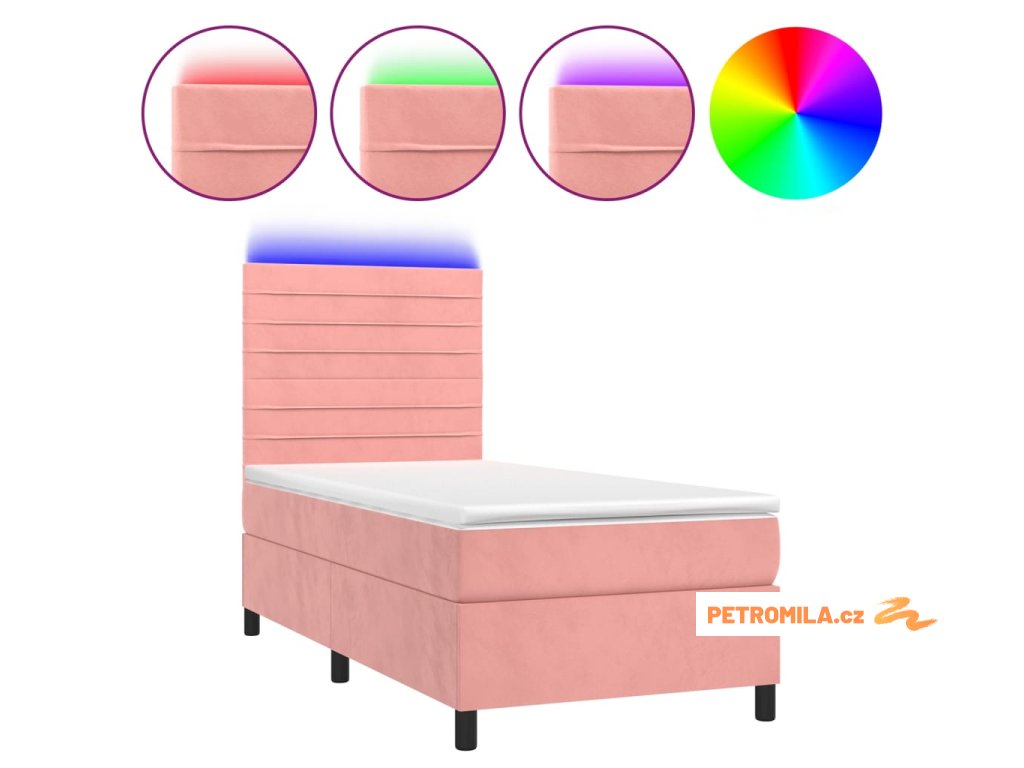 Box spring postel s matrací a LED růžová 90x200 cm samet