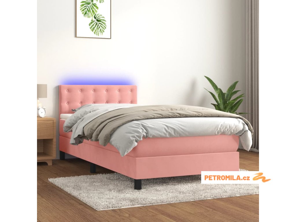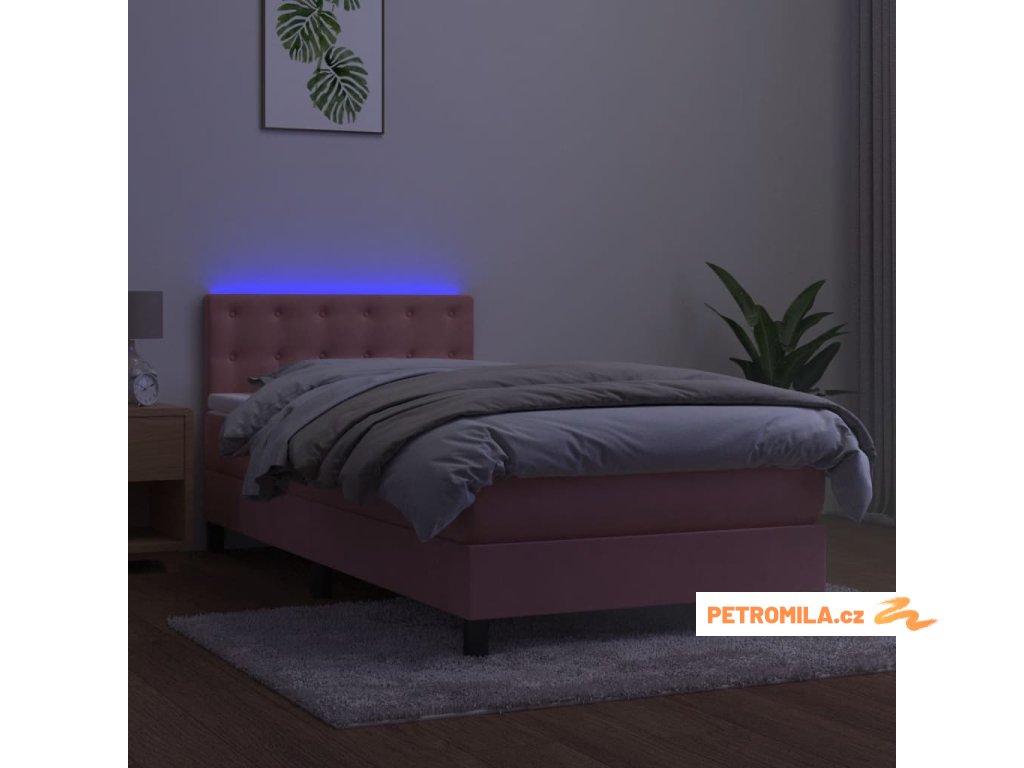 Box spring postel s matrací a LED růžová 90x200 cm samet