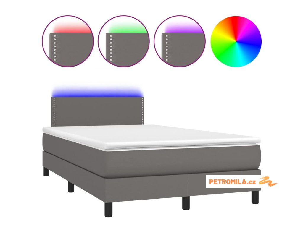 Box spring postel s matrací a LED šedá 120x200 cm umělá kůže