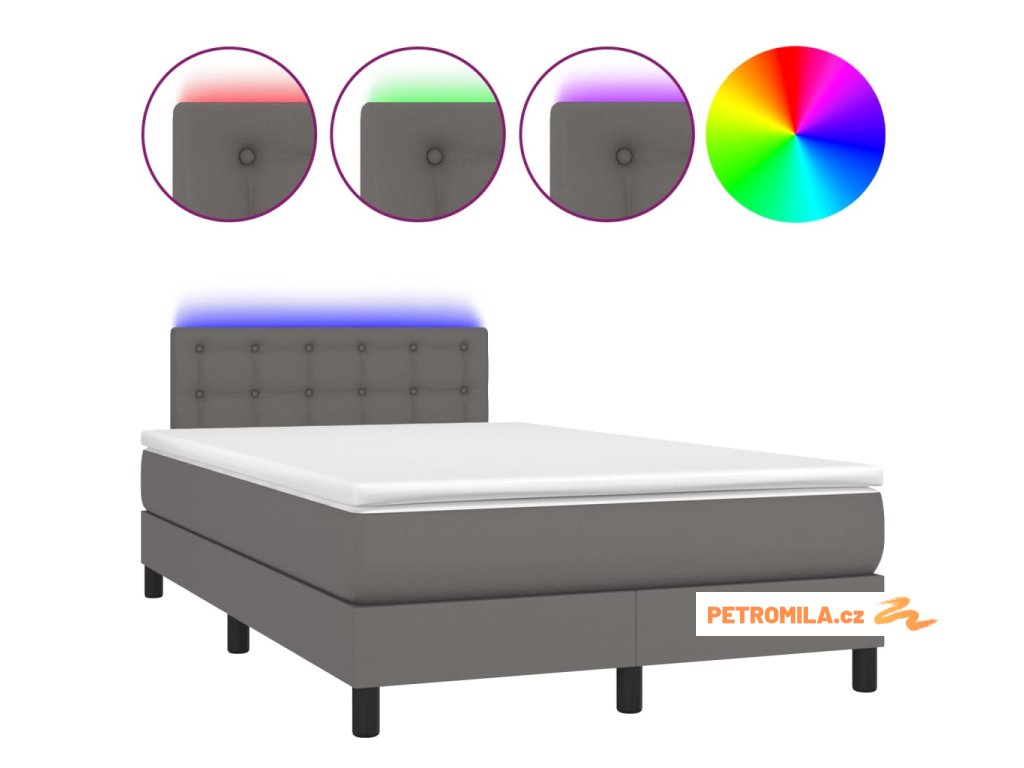 Box spring postel s matrací a LED šedá 120x200 cm umělá kůže